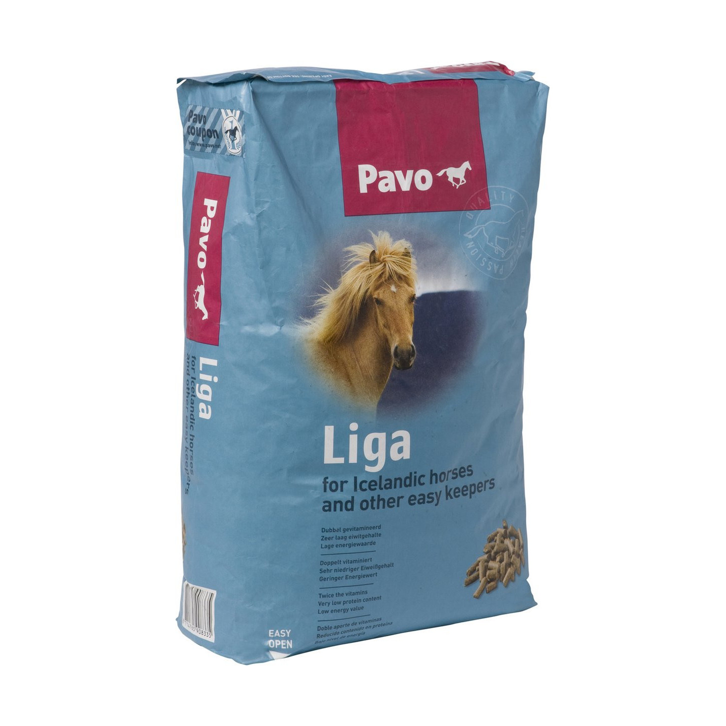 Pavo Liga bevat weinig energie en eiwit, maar 2 maal zoveel vitamines en mineralen als ander laag energetisch krachtvoer. Kijk maar eens naar de gehaltes aan vitamines, koper, zink, selenium en niet te vergeten biotine. De spoorelementen in dit product zijn organisch gebonden voor een extra goede verteerbaarheid. Pavo Liga is alles wat sobere paarden nodig hebben voor een goede gezondheid, een glanzende vacht en sterke hoeven.
