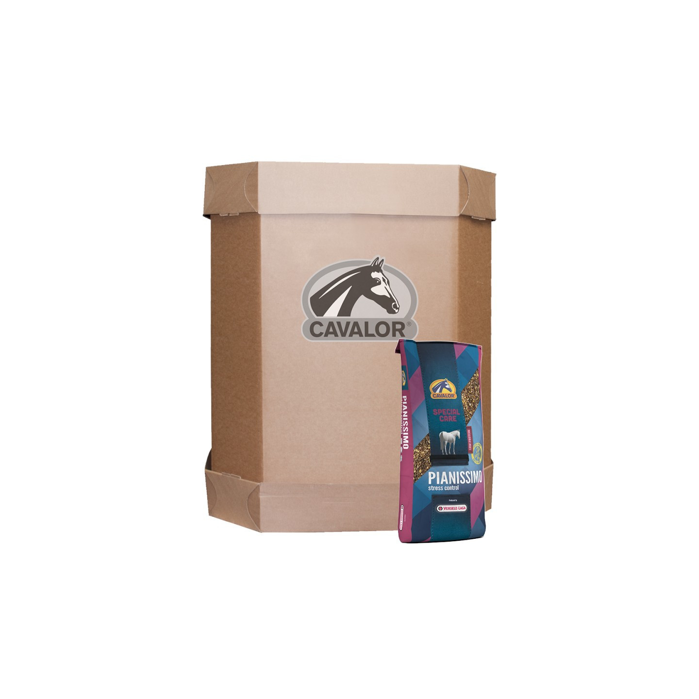 Evenwichtige en volwaardige mix voor nerveuze paarden Cavalor Pianissimo is speciaal samengesteld voor paarden die last hebben van stress of zich moeilijk laten berijden. Deze havervrije mix bevat alle voedingscomponenten voor een complete en evenwichtige voeding. Om nerveuze paarden niet te veel energie te geven, wordt gewoonlijk minder krachtvoer gegeven en meer ruwvoer. Maar dat resulteert in een onevenwichtige voeding. Cavalor Pianissimo heeft een zeer laag eiwitgehalte (7,75 % Vre) waardoor het heel goed te gebruiken is naast ruwvoer, dat zeer rijk is aan eiwit (zoals kuilgras of voorjaarsgras). Het lage eiwitgehalte maakt dat dit voer ook geschikt is voor paarden die aan het aftrainen zijn na een wedstrijdseizoen, paarden die tijdelijk op rust staan (herstel) en paarden die gevoelig zijn voor een teveel aan eiwitten.