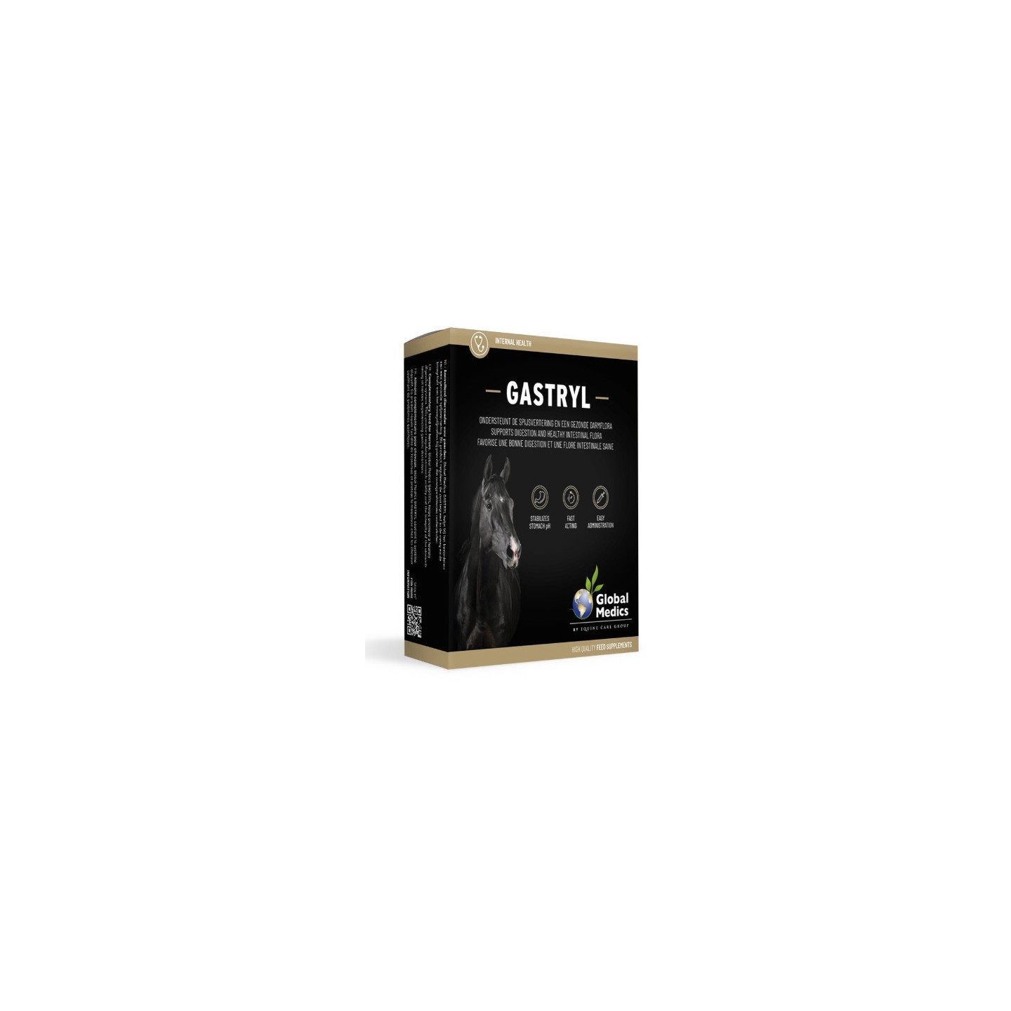 Maagproblemen komen helaas vaak voor bij paarden. Voornamelijk sportpaarden, maar ook recreatiepaarden, fokmerries en zelfs jonge veulens kunnen problemen ondervinden. Maagproblemen ontstaan doordat het maagslijmvlies beschadigd raakt door te zure maaginhoud, wat kan leiden tot een maagontsteking of maagzweren. Paarden met maagproblemen hebben vaak last van verminderde eetlust en gewichtsverlies, verminderde prestaties, een doffe vacht of knarsetanden. Gastryl is speciaal samengesteld voor paarden met een gevoelige maag en eventueel daarmee gepaard gaande slechte eetlust. Het bevat verschillende componenten die de zuurtegraad in de maag regelen, waaronder magnesiumhydroxide, lithothamne, natriumbicarbonaat en natriumcitraat. Daarnaast bevat Gastryl ook het sporenelement zink dat van belang is voor de integriteit van het maagslijmvlies, in de specifieke organische vorm van zinkmethionine. De formule bevat ook threonine, een essentieel aminozuur dat nodig is voor de productie van mucine, een noodzakelijk onderdeel van het slijm dat de maagwand beschermt. Het supplement kan eenvoudig oraal worden toegediend door middel van de tube, voor een efficiënte opname.