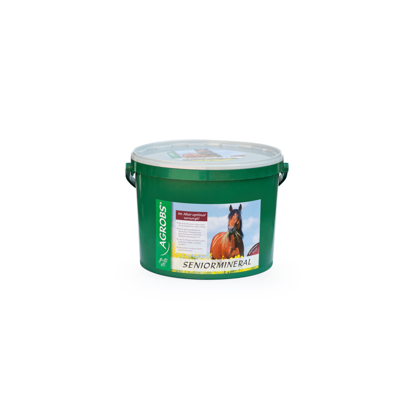 De formulering van Seniormineral is gebaseerd op de bewezen AGROBS droge grasvezels. Zonder toevoeging van granen en melasse voldoet het aan alle vereisten voor een aangepast en hoogwaardig dieet. Daarnaast biedt Seniormineral goed beschikbare voedingsstoffen zoals aminozuren, B-vitaminen en vitamine C voor een optimale ondersteuning van de spieren en het immuunsysteem. Lijnzaad, biergist en geselecteerde oliën (zonnebloemolie, lijnzaadolie) bevorderen de spijsvertering en zorgen voor een mooie vacht. Het recept wordt afgerond met fruit, groenten en rozenbottel. Seniormineral levert een waardevolle en gezonde bijdrage aan het welzijn van het paard.